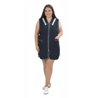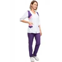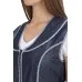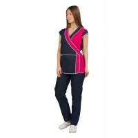 Сарафан женский укороченный, расклешенного силуэта с центральной застежкой на молнию. Боковая и центральная отрезная часть полочки выполнена из дышащей ткани, что придает дополнительный комфорт при использовании сарафана в условиях повышенных температур. Сарафан имеет два нижних вместительных кармана, все срезы изделия обработаны капроновым кантом. Спинка прямая. Объем талии регулируется двумя полу-поясами. Сарафан предназначен для защиты от общих загрязнений.