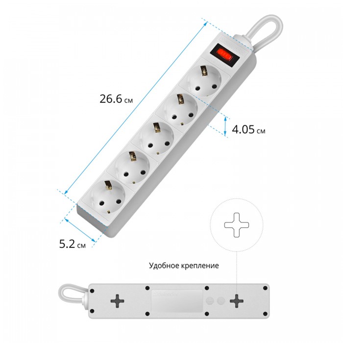 Сетевой фильтр DEFENDER ES, 5 розеток, 5 м, белый, 99483