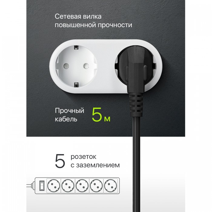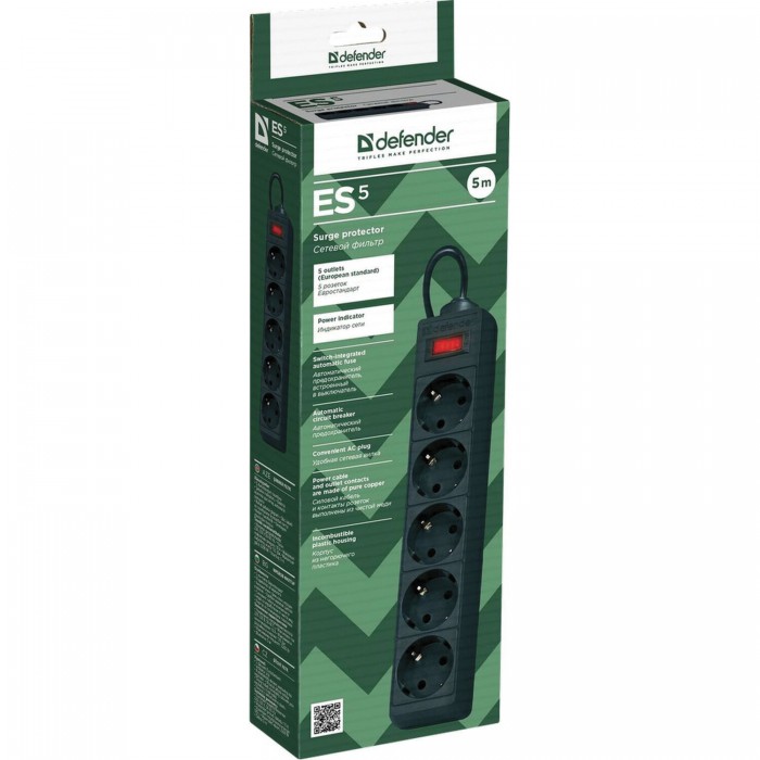 Сетевой фильтр DEFENDER ES, 5 розеток, 5 м, черный, 99486