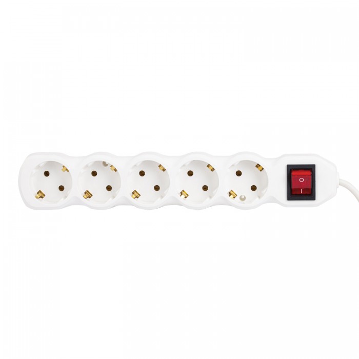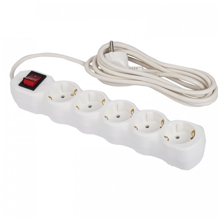 Сетевой фильтр СУ10-005 5 розеток, с заземлением, выключатель, 16 А, 3 м, белый, 7044