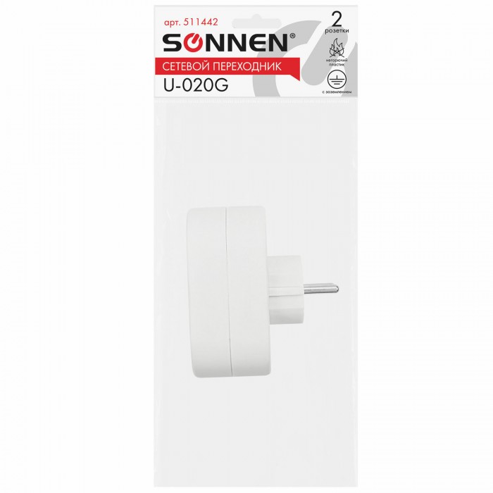 Сетевой разветвитель SONNEN U-020G на 2 розетки позволяет использовать одну электрическую розетку для подключения нескольких электрических приборов с заземлением.
