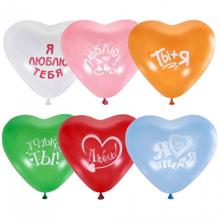 Шар 10"/25см Сердце Пастель (шелк) рис ассорти 8-ми.цветное 50шт 6043018 /цена за упак/