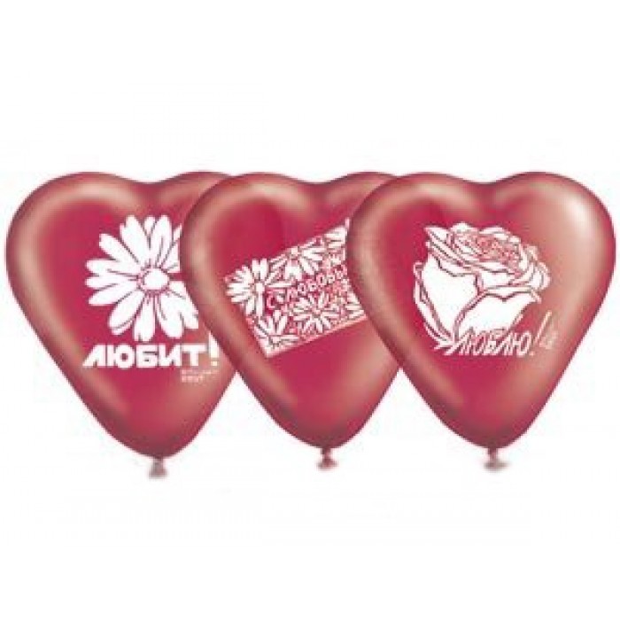 Шар 10" Сердце 2 цв. с рис. шелк 25 шт /1105-0120 /