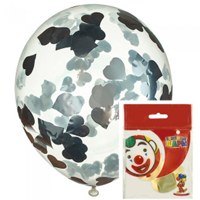 Шар 12"/30см Декоратор TRANSPARENT наполнение сердца конфетти фольга серебро 2шт 6053796 /цена за упак/