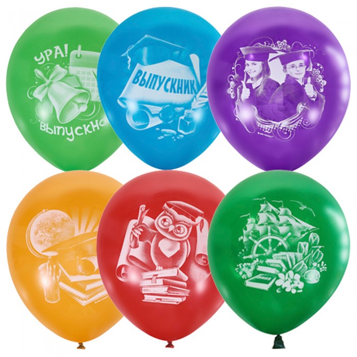 Шар 12"/30см Пастель+Декоратор (растр) 2 ст. рис Выпускник 50шт 6040840 /цена за упак/