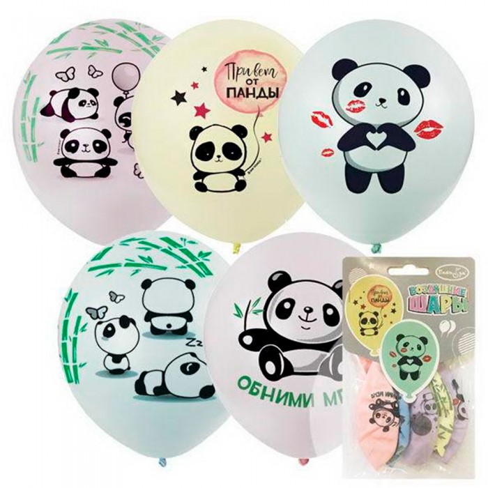 Шар 12"/30см Macaroons ассорти рис. Панды 5шт 6069452 /цена за упак/