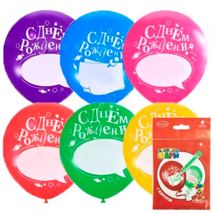 Шар 12"/30см С Днем Рождения с маркером 5шт 6054939 цена за упак