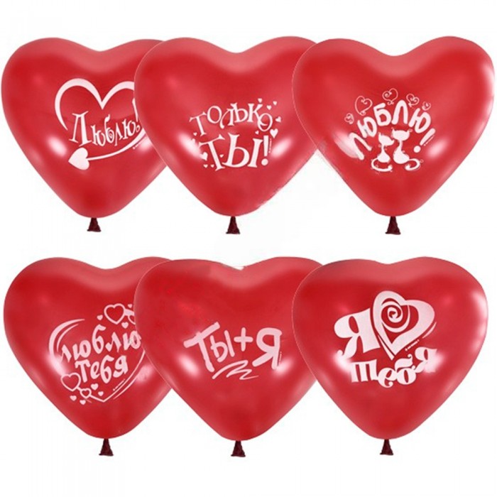 Шар 12"/30см Сердце Декоратор (шелк) CHERRY RED с печатью 25шт 6049270 /цена за упак./