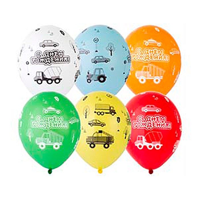 Шар 14" шелкография пастель с ДР Машинки 25шт / цена за упак/ 1103-2370