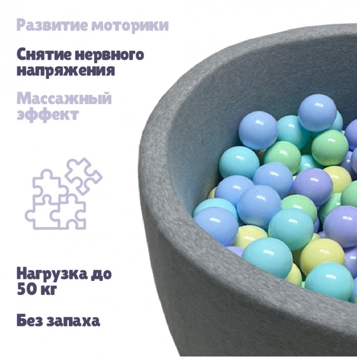 Набор из 150 разноцветных шариков ROMANA Airball идеален для подвижных игр и отдыха в сухих бассейнах. Комплект из 150 шаров диаметром 7 см в нежных, пастельных оттенках для наполнения сухого бассейна или манежа подарит малышам не только веселье, но и пользу. При погружении в них происходит точечное давление на тело малыша, укрепляются мышцы, тренируется мелкая моторика.