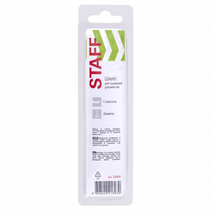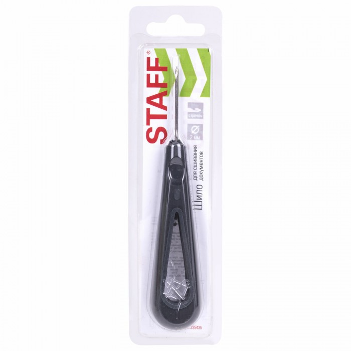 Шило канцелярское для сшивания документов, С КРЮЧКОМ, диаметр 2 мм, европодвес, STAFF, 235435