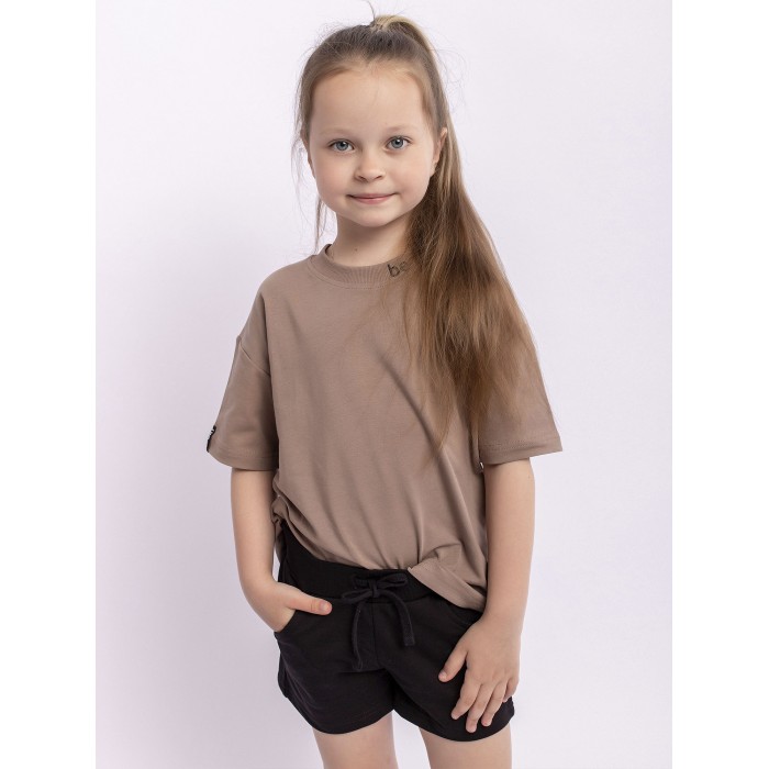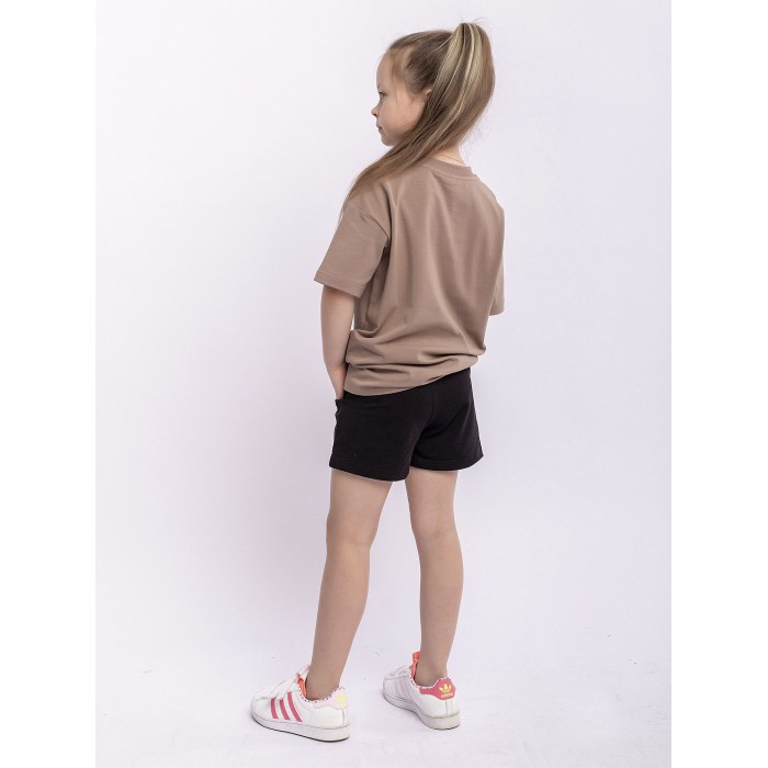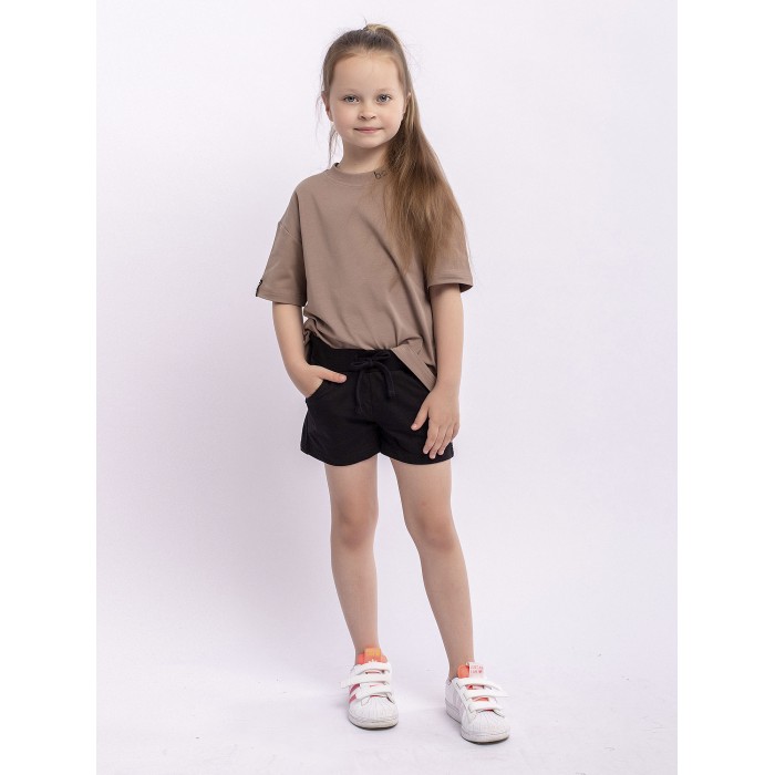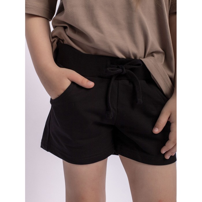 Шорты для девочки черные спортивные из футера. Шнурок в поясе, карманы по бокам.