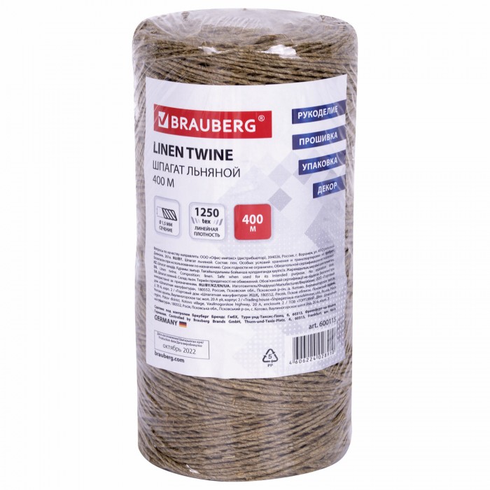 Льняной шпагат BRAUBERG отлично подходит для декорирования, плетения, обвязки, упаковки товаров, инкассации, опечатывания и прошивки документов. Активно применяется для хозяйственных и бытовых нужд в домашнем и дачном хозяйстве.