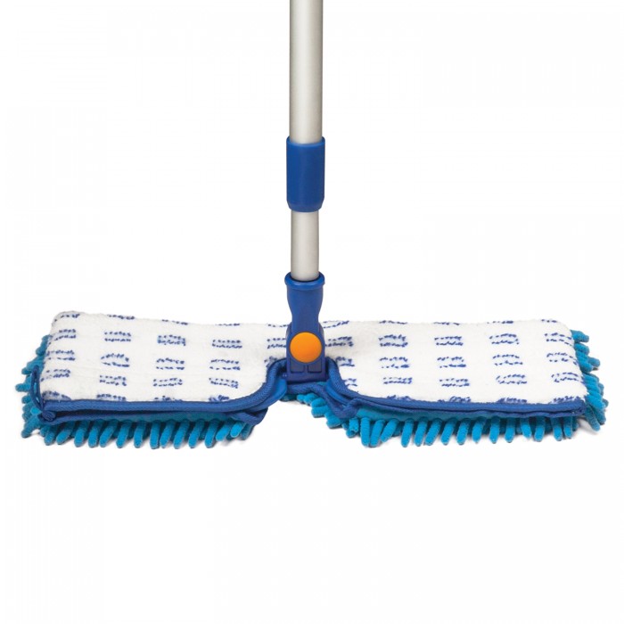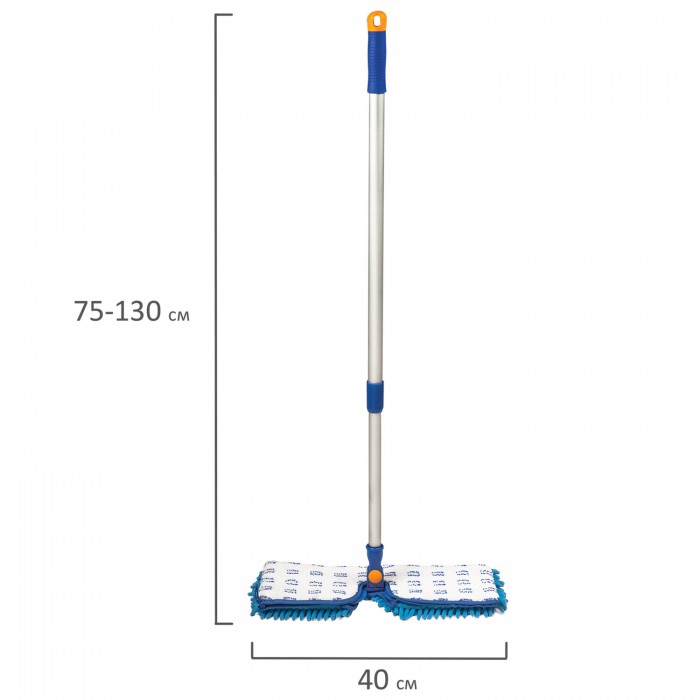 Швабра двусторонняя 40 см, телескопический черенок 130 см (алюминий), резьба 1,6 см, микрофибра, LAIMA, 601465