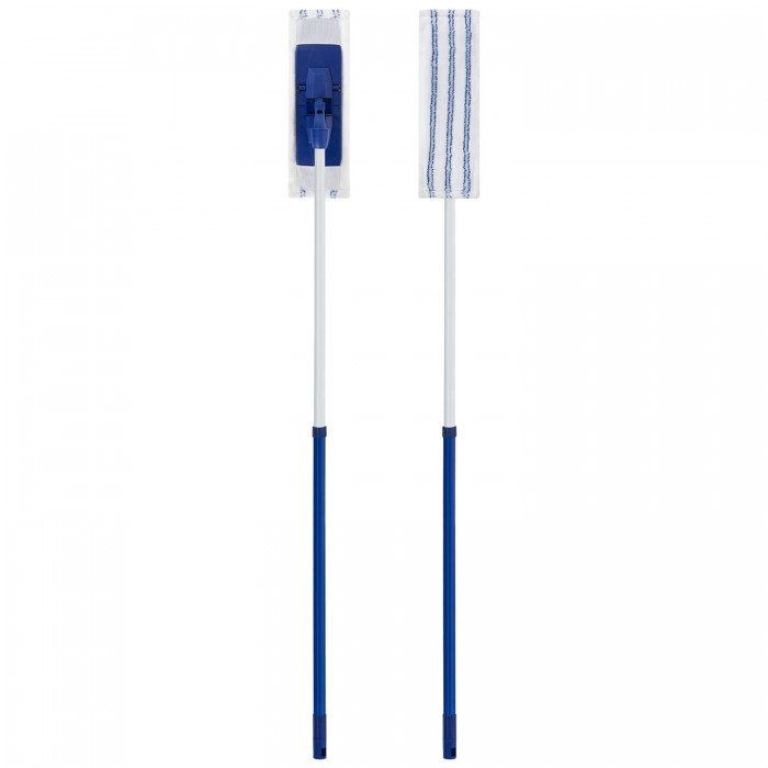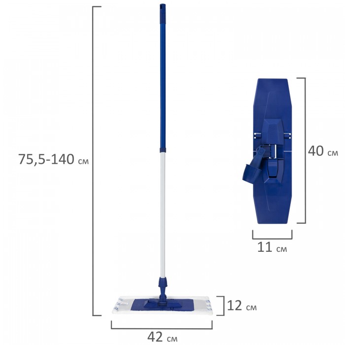 Легкая и прочная алюминиевая конструкция. Возможность изменять положение пластины, относительно рукоятки, что дает возможность доступа к труднодоступным местам для уборки. Удобная регулировка длины рукоятки.