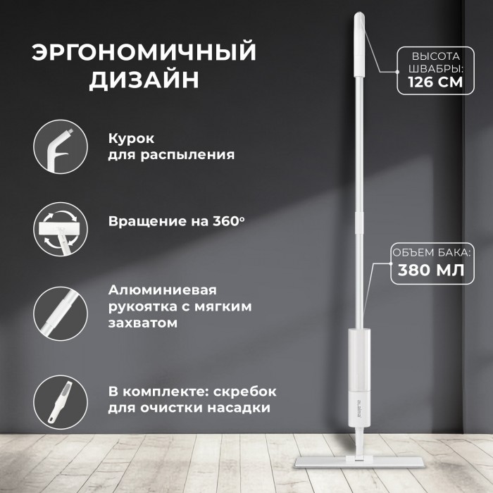 Швабра с распылителем LAIMA предназначена для сухой и влажной уборки помещений. Её можно использовать для мытья вертикальных, горизонтальных поверхностей, напольных покрытий любого типа, окон.