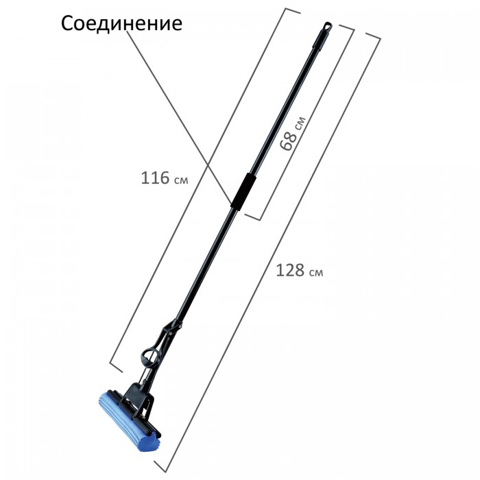 Швабра самоотжимная, роликовый отжим, насадка PVA 26 см, черенок 110 см, LAIMA, 601466