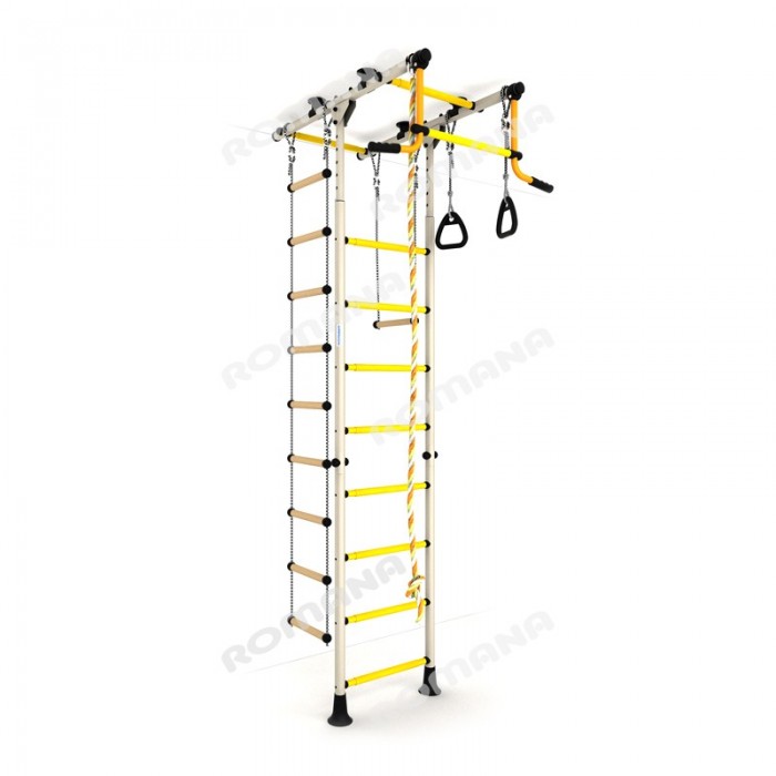 Спортивно-игровой комплекс Комета-1 устанавливается в распор (между полом и потолком) и располагает многообразными снарядами: кольца, трапеция, канат, веревочная лестница. Такой набор позволяет выполнять различные физические упражнения, помогающие детям развивать силу, ловкость и координацию.