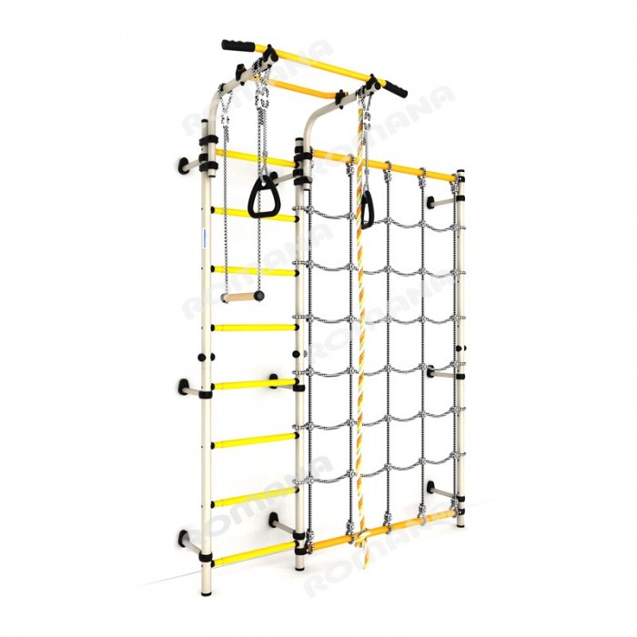 Шведская стенка с креплениями к стене РОМАНА Карусель S3 – это сочетание самого популярного ДСК Комета NEXT 1 и пристенного канатного лаза. Толстая веревка 10 мм обеспечивает комфорт и безопасность при занятиях. Дети оценят широкий спортивный комплекс - практически 2 метра по ширине, удобно для игр и спорта. В комплекте: лестница гимнастическая, турник подвижный, кольца гимнастические, трапеция, канат, сетка для лазания. Высота: 2270 мм. Допустимая нагрузка: 100 кг. Вес с упаковкой: 34 кг.