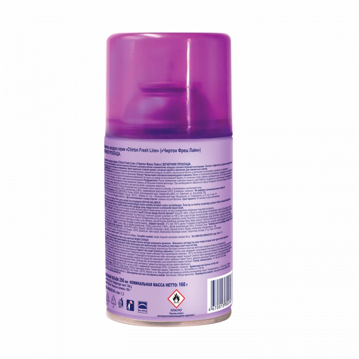 Сменный баллон 250 мл, CHIRTON "Вечерняя прохлада", для автоматических освежителей, универсальный, сухое распыление, 4670013302567