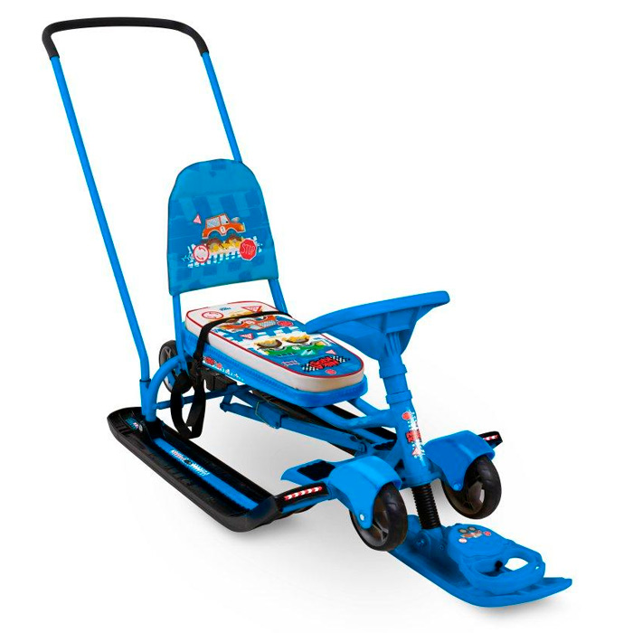 Размер упаковки: 101 х 46,5 х 25,5 см Размер в разложенном виде: 112 х 49 см Размер сиденья: 44,5 х 20 см Высота по руль: 42 см Высота по сиденью: 29 см Высота до ручки толкателя: 92 см Страна производитель: Россия Материал: металл, пластик, полимерные материалы Вес: 10 кг Возраст ребёнка: 3+ Снегокат – это современные санки, имеющие руль и управляемые при помощи лыж. С помощью этого замечательного средства передвижения ребёнок с большой радостью будет скатываться со снежных склонов. Изготовлено изделие из высококачественных, прочных и надёжных материалов. Преимущества: - яркий дизайн; - крепкая конструкция; - мягкое сиденье; - родительская ручка-толкатель; - усиленный тормоз; - буксировочный трос с автоматической намоткой; - 2 в 1 (колеса и полозья позволят передвигать снегокат по любой дороге); - механизм выдвижных колесных шасси.