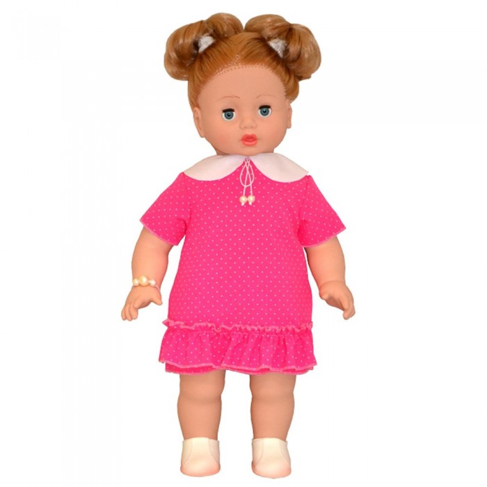 Размер упаковки: 62 х 28 х 15 см Высота куклы: 57 см Функционал: игрушка для девочек, куклы и аксессуары Вид упаковки: пакет Страна производитель: Беларусь Материал: полимеры, текстиль Комплектация: кукла - 1 шт Возраст ребенка: для детей от 3 лет Классическая кукла понравится девочкам и станет отличным подарком. Особенности: - подвижные части тела - съемная одежда - костюм из мягкой ткани - кукла озвучена (6 фраз) - закрывает глаза в положении "лежа" - милое личико - качественные материалы