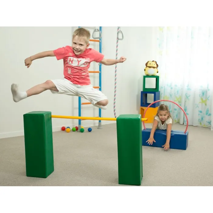 Спортивный модуль «Прыг-скок» - мягкий элемент полосы препятствий, который подходит для спортивных занятий как самостоятельный элемент, так и в составе всей полосы. Способствует развитию ловкости и гибкости у детей. Хорошо выдерживает нагрузку, быстро восстанавливает свою первоначальную форму и не требует сложного гигиенического ухода. Подходит для дошкольных учреждений и для домашнего пользования. В комплекте: палочка, прямоугольник. Выдерживает нагрузку до 50 кг. Габаритные размеры 1060 x 225 х 600 мм. Вес с упаковкой 3,2 кг.