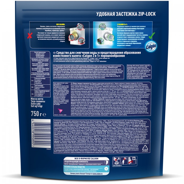 Средство для удаления накипи в стиральных машинах CALGON смягчает жесткую воду, повышая эффективность стирки. Защищает все жизненно важные части стиральной машины от накипи.