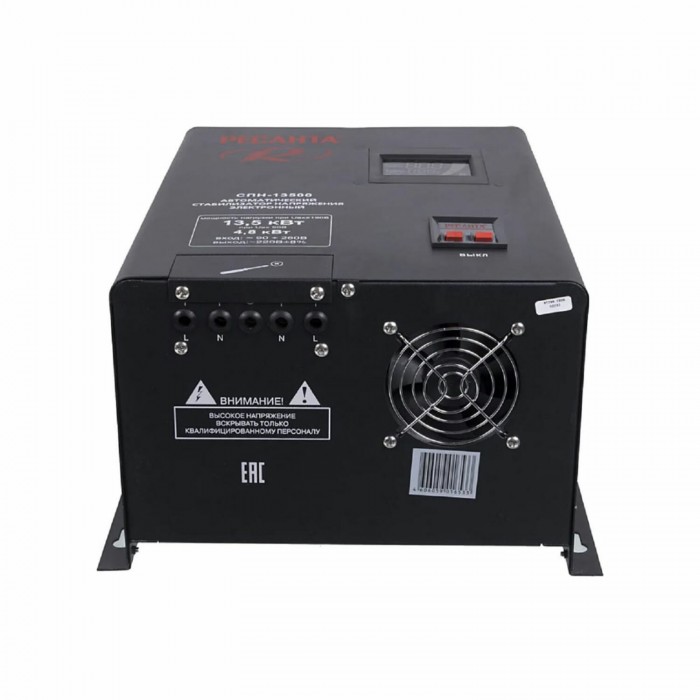 Стабилизатор РЕСАНТА СПН-13500 поможет при скачках напряжения от 90 до 260 В. Подключите к нему электроприборы общей мощностью до 13,5 кВт и защитите их от неправильного функционирования и поломки.