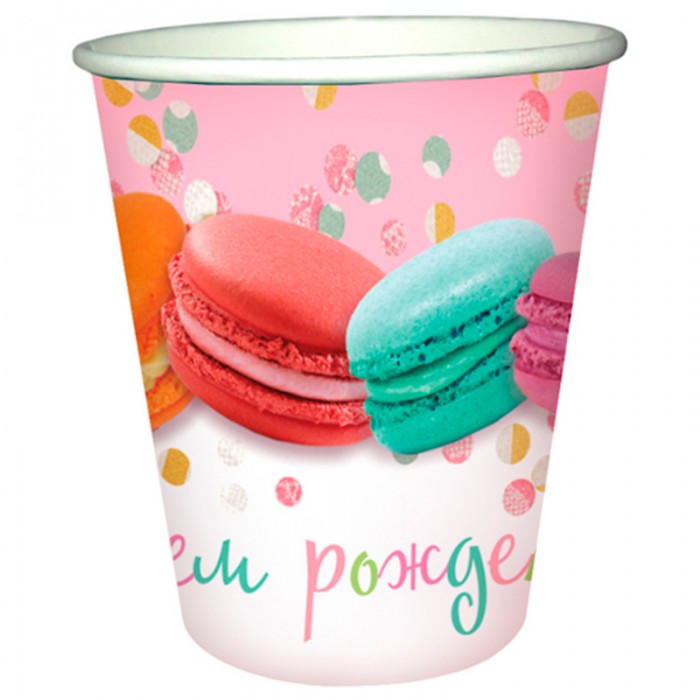 Стаканы бумажные ПатиБум "С Днем Рождения. Макаруны", 200мл, 6шт.