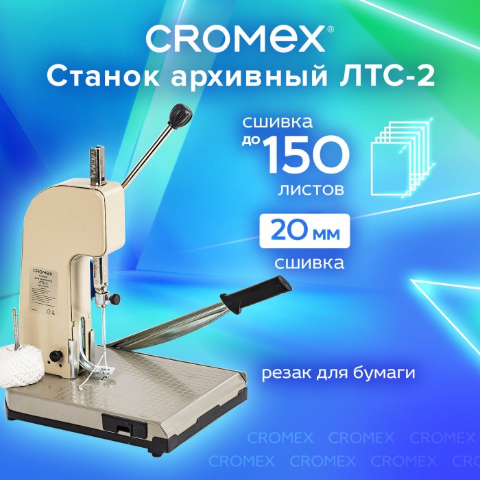 Ручной станок для архивного переплета CROMEX "ЛТС-2" — надёжное решение для обеспечения бесперебойного делопроизводства. Обеспечивает прочный и аккуратный переплёт на нить в соответствии с ГОСТ и законодательством. Идеален для офиса и архива.