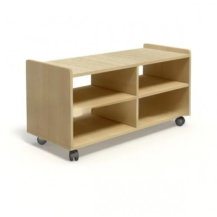 Открытого типа. Из ЛДСП Бук и Цветного Кромка,Кант ПВХ. Размеры: 900 х400х528 мм Вес: 20кг Объём: 0,04м/куб Установлены пластиковые или усиленные поворотные прорезиненные колеса. 2 из них со стопором (тормозом). ЛДСП БУК , колесо ПЛАСТИК