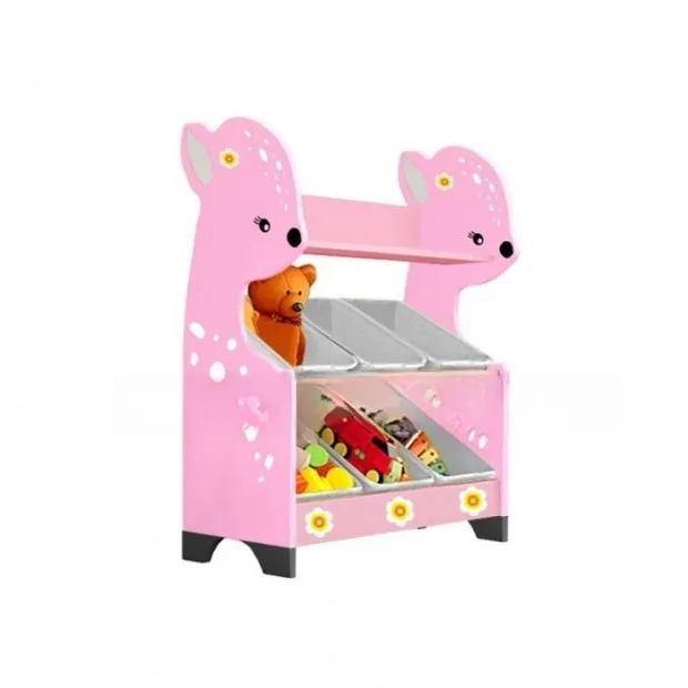 Стеллажная наклонная система хранения 35/5 с декорацией розовая (серия Оленёнок)