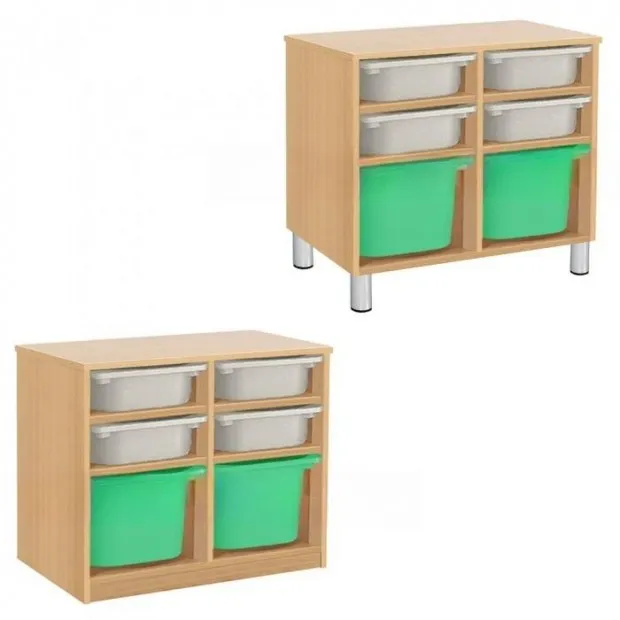 Из ЛДСП Бук или Цветного Размеры: 670х400х700мм Вес: 26кг Объём: 0,08м/куб Контейнер ПВХ: 295 х395х140мм - 4 шт. Контейнер ПВХ: 295 х395х200мм - 2 шт. на полках. ЛДСП БУК на цоколе