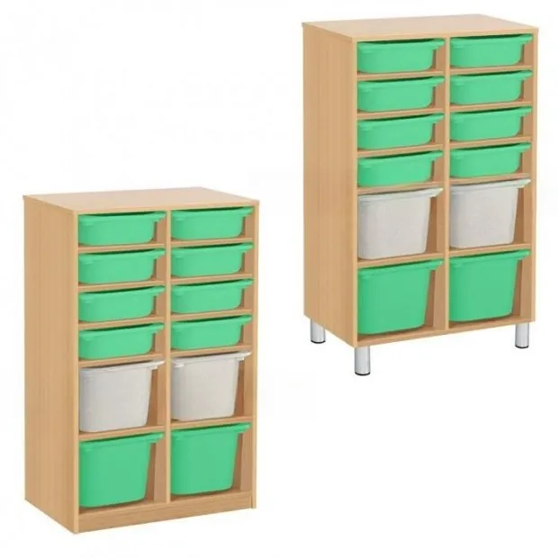 Из ЛДСП Бук или Цветного Размеры: 670х400х1400мм Вес: 45кг Объём: 0,15м/куб Контейнер ПВХ: 295 х395х140мм - 8 шт. Контейнер ПВХ: 295 х395х200мм - 4 шт. на полках. Крепёж к стене обязателен. ЛДСП БУК на цоколе