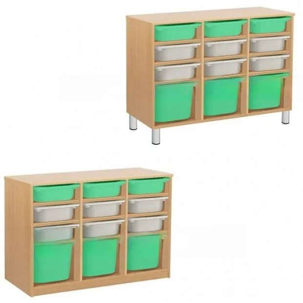 Из ЛДСП Бук или Цветного Размеры: 1000х400х9 00мм Вес: 44кг Объём: 0,15м/куб Контейнер ПВХ: 295 х395х140мм - 9шт. Контейнер ПВХ: 295 х395х200мм - 3 шт. на полках. Крепёж к стене обязателен. ЛДСП БУК на цоколе