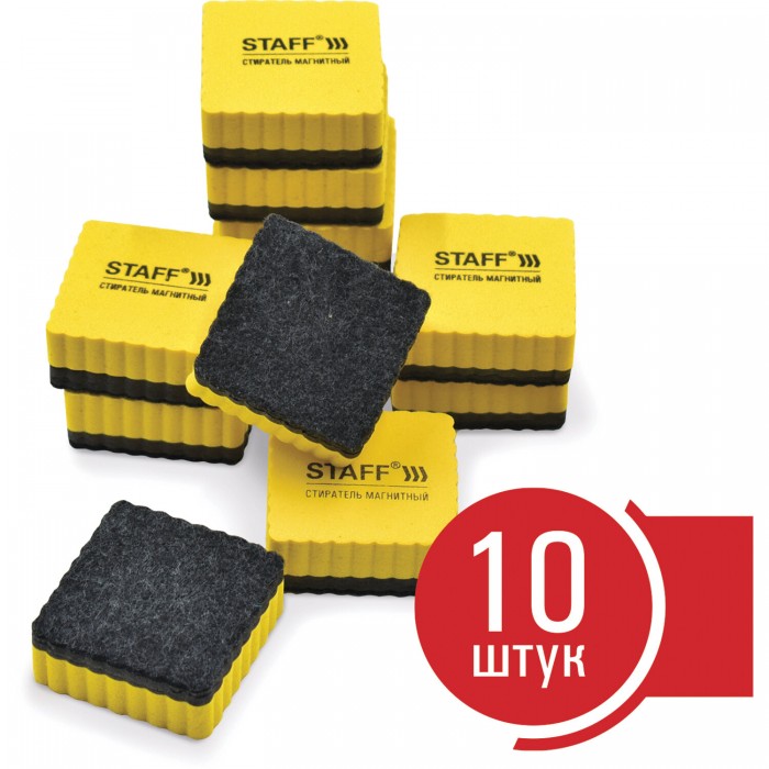 Стиратели магнитные для магнитно-маркерной доски, 50х50 мм, КОМПЛЕКТ 10 ШТ., STAFF Basic, желтые, 237505