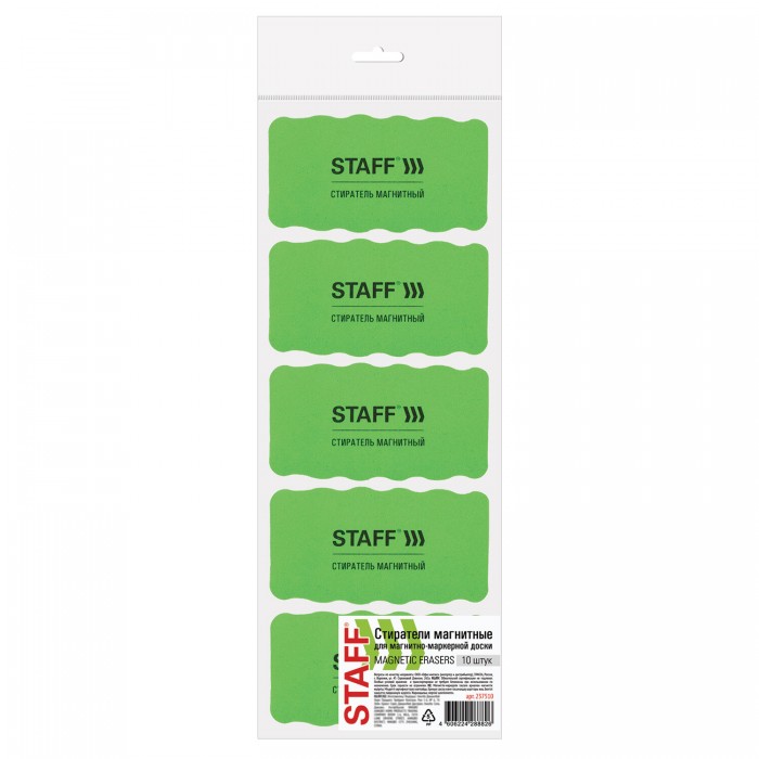 Стиратели магнитные для магнитно-маркерной доски, 57х107 мм, КОМПЛЕКТ 10 ШТ., STAFF "Basic", зеленые, 237510