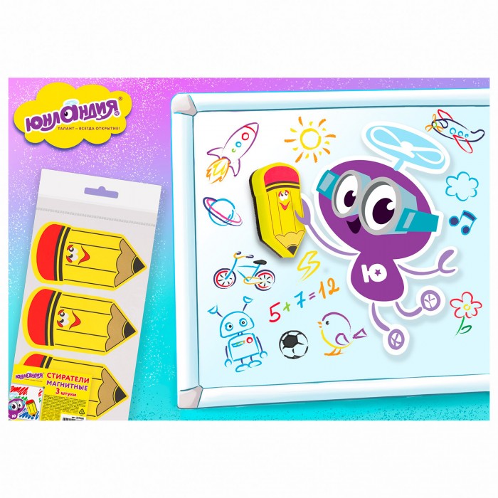Стиратели магнитные ЮНЛАНДИЯ предназначены для стирания сухим способом надписей, сделанных маркером, с белых досок.