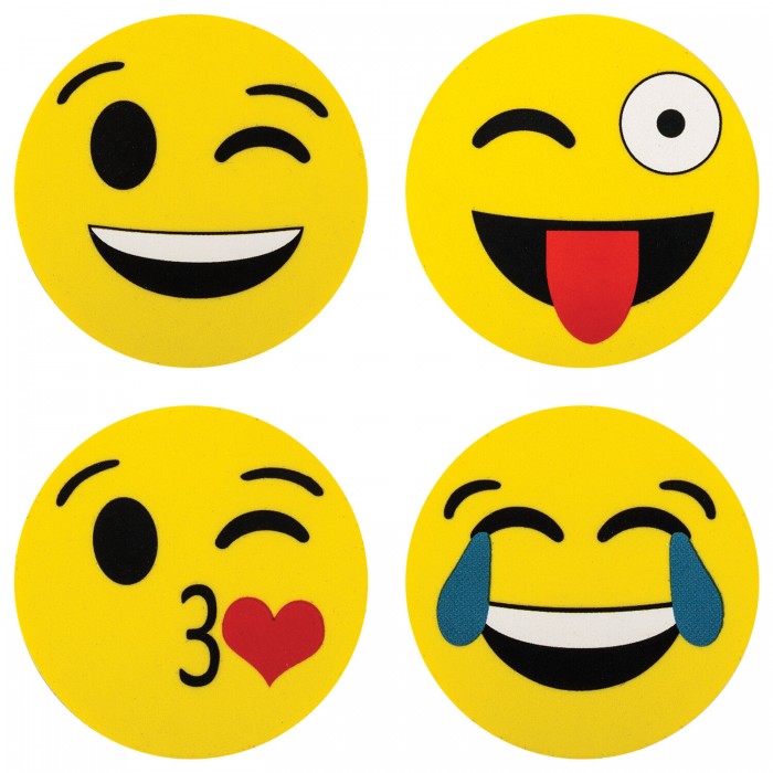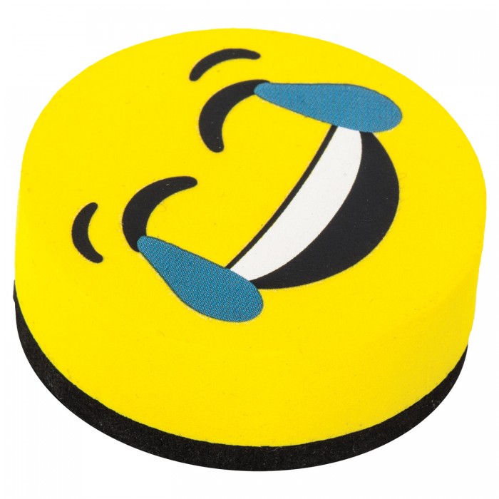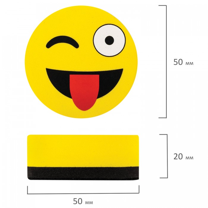 Стиратели магнитные для магнитно-маркерной доски ЮНЛАНДИЯ "Смайлик", 50 мм, КОМПЛЕКТ 4 ШТ., желтые, с рисунком, 237504