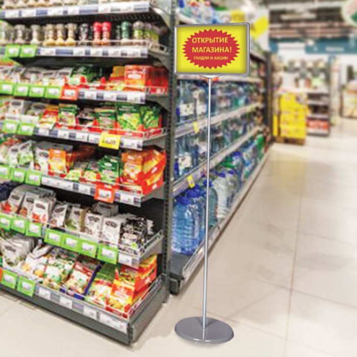 Стойка-инфодержатель напольная (ценникодержатель), 210x300 мм, А4, сталь, СЕРАЯ, BRAUBERG, 291035