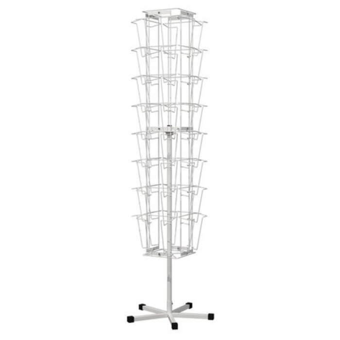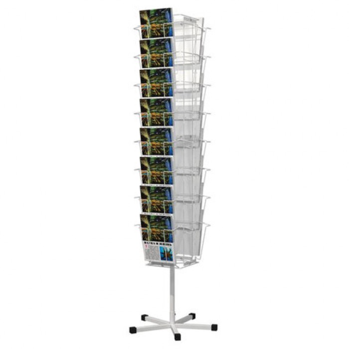 Стойка напольная для рекламных материалов (188х54х54 см), на 32 лотка, сетчатая, вращающаяся, белая, А-29-ТМ