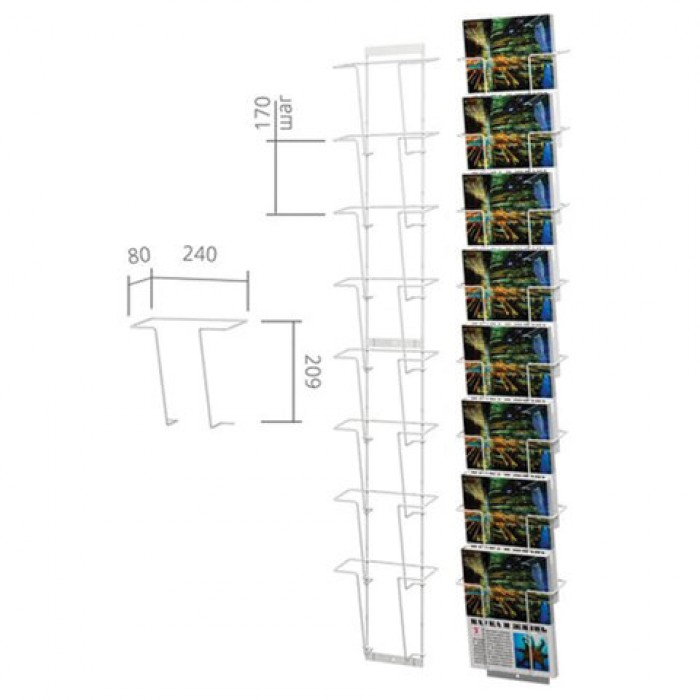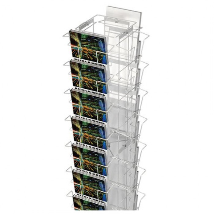 Напольная вращающаяся подставка для рекламных буклетов, каталогов, листовок формата А4. Состоит из четырех держателей, вращающихся вокруг оси. На каждом держателе 8 отделений. Устойчивая конструкция.