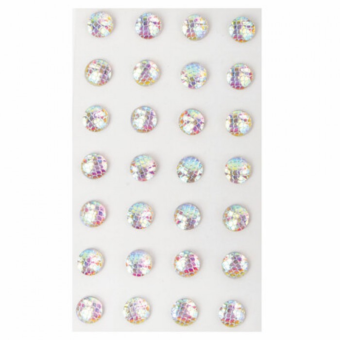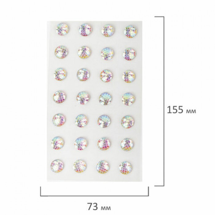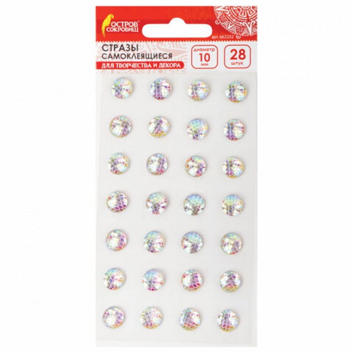 Стразы самоклеящиеся КРУГЛЫЕ, 10 мм, 28 штук, с радужным эффектом, на подложке, ОСТРОВ СОКРОВИЩ, 662232