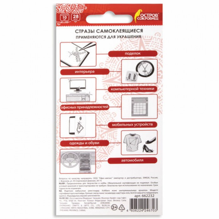 С помощью самоклеящихся страз ОСТРОВ СОКРОВИЩ можно декорировать поделки и аппликации, детали интерьера, одежду и гаджеты, реализовать самые смелые творческие идеи.