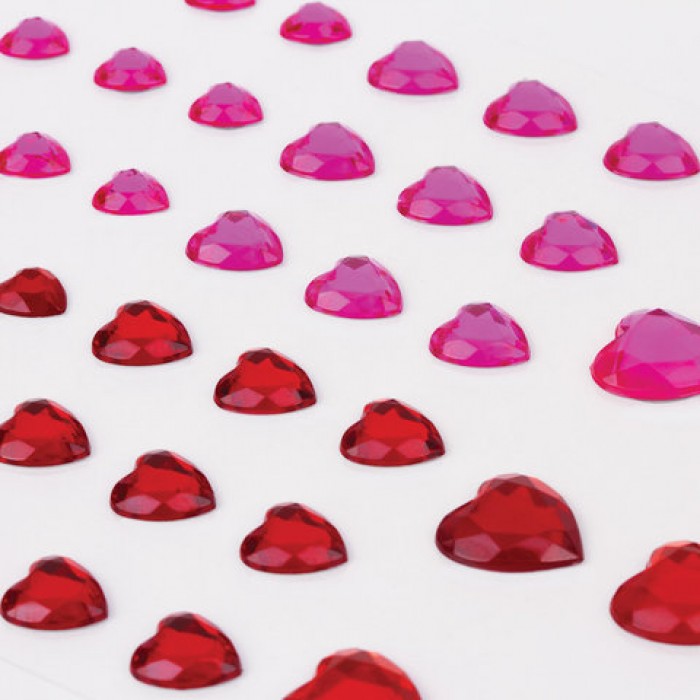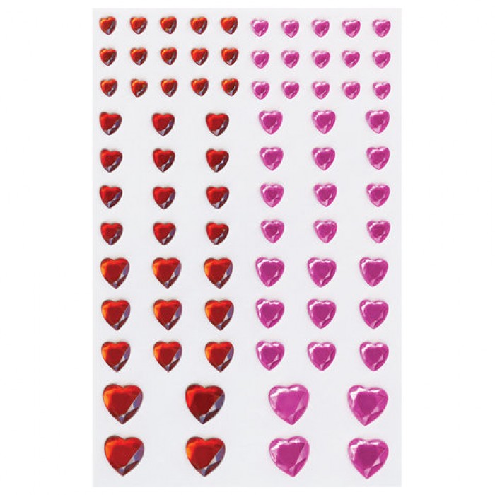 Стразы самоклеящиеся "Сердце", 6-15 мм, 80 шт., розовые/красные, на подложке, ОСТРОВ СОКРОВИЩ, 661399