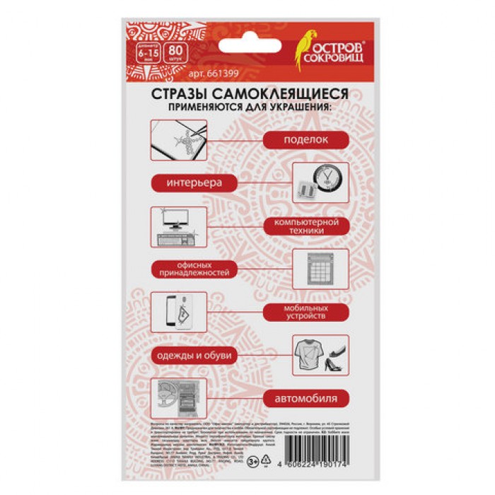С помощью самоклеящихся страз ОСТРОВ СОКРОВИЩ можно декорировать поделки и аппликации, детали интерьера, одежду и гаджеты, реализовать самые смелые творческие идеи.