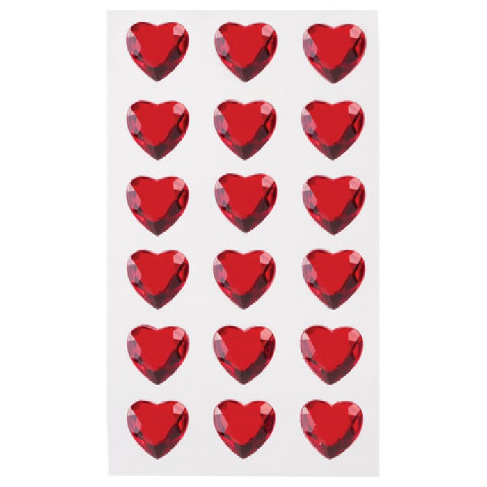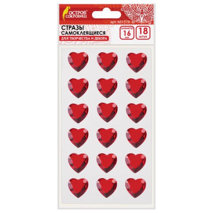 Стразы самоклеящиеся "Сердце", красные, 16 мм, 18 шт., на подложке, ОСТРОВ СОКРОВИЩ, 661579