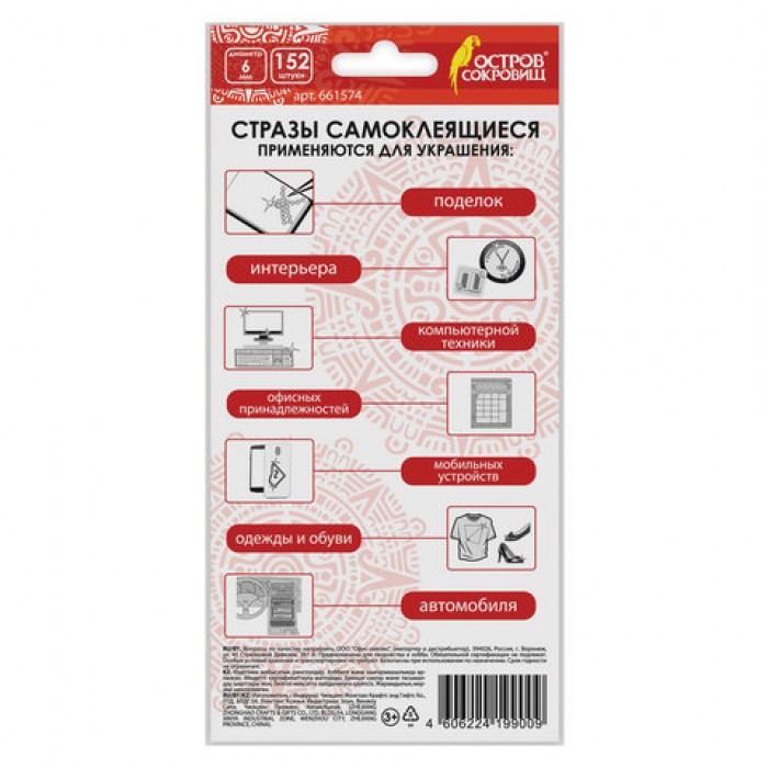 С помощью самоклеящихся страз ОСТРОВ СОКРОВИЩ можно декорировать поделки и аппликации, детали интерьера, одежду и гаджеты, реализовать самые смелые творческие идеи.