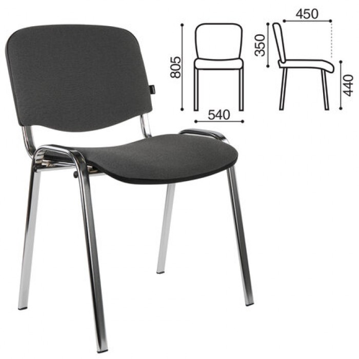 Стул для персонала и посетителей BRABIX "Iso CF-001", хромированный каркас, ткань серая с черным, 531420
